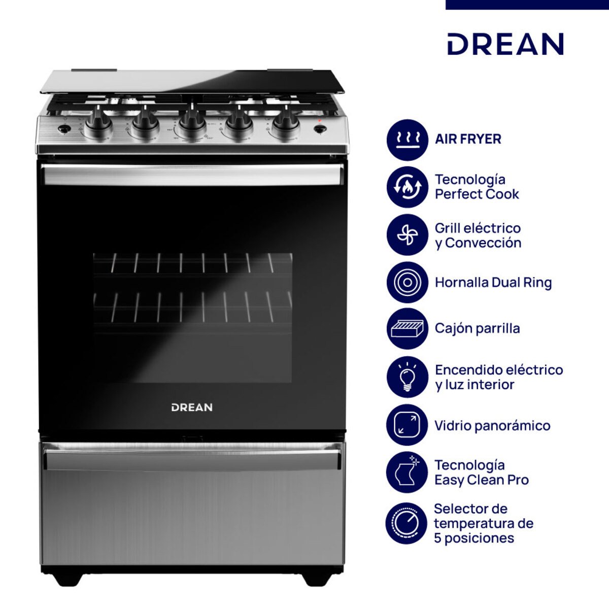Cocina Multigas 56 cm Inoxidable con Air Fryer Drean – CD5617AI0